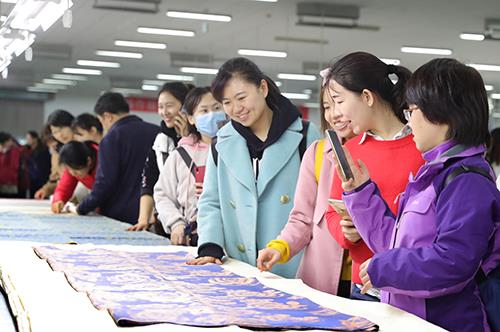 ? ? ? ?女干部职工饶有兴趣地旅行了现代化织造生产线、公司产品展室,在国家级手艺巨匠事情室,与党的十九大代表、天下劳模、中华手艺大奖获得者杨普学习交流,加入富厚的意见意义运动,现场体验插花艺术,演出歌舞等等,在快乐中享受节日的优美。